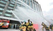 갑자기 불이 난다면? 급작스런 상황에 평소 침착한 사람들도 허둥지둥하다 사고를 피하지 못하는 경우가 많다고 한다. 재난 위기 시 당황하지 않고 침착하게 대피하려면 훈련을 지속적으로 반복해야 한다는 것이 전문가들의 공통된 지적이다. ‘2019 재난대응 안전한국훈련’이 24일 서울 종로구 계동 현대사옥에서 열렸다. 이곳은 주변에 관공서 한옥마을 문화재 지하철역 등이 밀집해 있어 최적의 훈련장소로 꼽힌다. 훈련은 테러에 의해 대형화재가 발생한 상황을 가정했다. 테러범의 차가 빌딩으로 돌진한 뒤 불이 나면 건물내부에 있는 인명을 구조하고 화재를 진압하는 내용으로 구성됐다. 종로구청과 종로소방서 종로경찰서 한국전력 등 민관군 인원 259명과 장비 51대가 참여했다. 최혁중 기자 sajinman@donga.com}