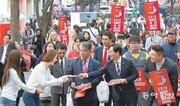유통업체 등이 참여하는 ‘2019 코리아세일페스타’ 개막을 하루 앞둔 31일 서울 중구 명동에서 성윤모 산업통상자원부 장관(오른쪽에서 두 번째)과 홍보모델인 방송인 강호동 씨(오른쪽)가 시민들에게 홍보 전단을 나눠주고 있다. 이번 행사는 22일까지 열린다.최혁중 기자 sajinman@donga.com}