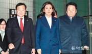 13일 오후 10시 35분경 자유한국당 나경원 원내대표가 국회 패스트트랙 지정 과정에서 벌어진 의원 폭행·감금 사건과 관련해 서울남부지검에서 8시간 가까이 조사를 받은 뒤 검찰청사를 나오고 있다. 나 원내대표는 “고위공직자범죄수사처와 비례대표제를 통해 권력을 장악하려는 여권의 무도함에 대해 역사가 똑똑히 기억하고 심판할 것”이라고 말했다. 왼쪽부터 김현아 정점식 의원, 나 원내대표, 정양석 의원. 최혁중 기자 sajinman@donga.com}
