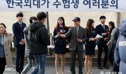 주말을 맞아 2020학년도 수시모집 논술고사가 한창 열리고 있는 가운데 23일 한국외국어대학교에서 김인철 총장과 홍보 대사들이 논술고사를 치르는 수험생들에게 핫팩을 나눠주고 있다. 최혁중 기자 sajinman@donga.com}