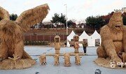 4일 서울 중랑구 중랑천 야외수영장에 볏짚으로 만든 독수리, 고릴라 등이 전시돼 있다. 중랑구는 내년 3월까지 전북 부안군 볏짚축제위원회의 후원으로 볏짚을 이용해 만든 작품 30여 점을 전시한다. 최혁중 기자 sajinman@donga.com}