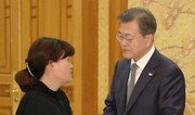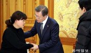 문재인 대통령이 18일 오후 청와대에서 태안화력발전소 작업 도중 산업재해로 사망한 고 김용균 씨의 어머니 김미숙 씨의 손을 잡고 위로하고 있다. 문 대통령은 이날 “공공기관 평가 때 생명과 안전이 제1의 평가기준이 되도록 하겠다”고 말했다.박영대 기자 sannae@donga.com}