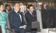 브루나이를 국빈 방문 중인 문재인 대통령과 김정숙 여사가 11일 반다르스리브가완 왕궁에 도착해 하사날 볼키아 브루나이 국왕(오른쪽)이 직접 운전하는 사륜차(버기)를 타고 만찬장으로 이동하고 있다. 문 대통령은 이날 “브루나이는 신남방정책의 중요한 협력 파트너”라며 “앞으로도 (브루나이의) 주요 국가발전사업에 기여하길 기대한다”고 말했다. 반다르스리브가완=박영대 기자 sannae@donga.com}