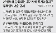 정부의 12·16 부동산 대책에 따라 23일부터는 투기지역이나 투기과열지구에서 시가 9억원을 넘는 주택을 구매할 때 금융회사로부터 받을 수 있는 대출 한도가 대폭 줄어든다. 15억 원 초과 주택에 대한 대출 전면 금지는 17일부터 이미 시행되고 있다. 22일 금융권에 따르면 12·16대책 발표 때 나온 시가 9억 원 초과~15억 원 이하 주택에 대한 대출 축소가 23일부터 시행된다. 지금까지는 주택 가격에 상관없이 주택담보인정비율(LTV) 40%를 적용했지만 이제는 9억 원까지 40%를, 9억 원 넘는 부분은 20%를 적용한다. 예를 들어 14억 원짜리 아파트는 기존에는 대출 한도가 5억6000만 원(14억 원×40%)이었으나 앞으로는 4억6000만 원[(9억 원×40%)+(5억 원*20%)]으로 1억 원 줄어든다. 부족한 부분을 신용대출 등 다른 대출로 돌려 막기도 쉽지 않다. 소득 대비 모든 대출 원리금 상환액을 뜻하는 총부채원리금상환비율(DSR) 관리가 강화되기 때문이다. 은행은 투기지역·투기과열지구의 시가 9억 원 초과 주택을 사려는 목적의 담보대출에 대해 대출자별로 DSR 40%(비은행권 60%) 이내로 관리한다. 지금까진 은행이 전체 가계대출 평균 DSR을 40% 안으로만 지키면 됐다. 누군가에게 40% 이상을 적용했다면 다른 고객은 40% 미만이 되게끔 해 전체 평균을 맞추는 식이다. 하지만 이제는 개인별 규제가 적용돼 대출이 깐깐해질 수밖에 없다. 23일부터는 주택 구입을 목적으로 한 사업자 대출도 제한된다. 주택임대업·매매업 이외 업종 사업자에게 투기지역·투기과열지구 내 주택 구입 목적의 주택담보대출이 금지된다. 주택임대업을 하는 개인사업자 대출에 대한 이자상환비율(RTI)도 기존 ‘1.25배 이상’에서 ‘1.5배 이상’으로 높인다. 임대소득이 이자 비용의 1.25배면 됐지만 이제는 1.5배는 돼야 한다는 것. 다만 23일 전에 주택매매계약을 체결하고 계약금을 납부한 사실을 증명한 차주(借主), 대출 신청 접수를 마친 차주는 제외된다. 한편 12·16대책의 우회로가 될 수 있다는 지적을 받아온 P2P(개인 간 거래) 대출도 어려워질 전망이다. 한국P2P금융협회와 마켓플레이스금융협의회는 22일 ‘주택매매 목적의 대출 취급 금지에 관한 자율규제안’을 발표했다. 정부 대책에 맞춰 시가 15억 원 초과 초고가 주택은 대출을 전면 금지하고, 시가 9억 원 넘는 고가 주택도 주택매매 자금으로 활용될 가능성이 있다고 판단되면 대출을 제한하기로 했다. 장윤정 기자 yunjung@donga.com}