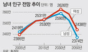 한국사회 곳곳에서 여성들의 약진이 두드러지고 있는 가운데 내년에 여성 인구가 남성보다 많아지는 ‘여초(女超)시대’가 열린다. 남아선호 경향의 약화로 성비(性比) 불균형이 바로잡히면서 출산율이 높아질 것이라는 기대가 커지고 있다. 반면에 늘어난 여성 인구의 사회진출 통로를 넓히지 못하면 ‘고령화 쇼크’가 더 악화될 것이라는 우려도 적지 않다. 23일 통계청의 장래인구추계에 따르면 내년 한국의 여성 인구는 2531만 명으로 남성 인구(2530만 명)를 넘어선다. 여성이 남성보다 많아지는 것은 관련 통계가 집계되기 시작한 1960년 이후 처음이다. 여초현상의 가장 큰 원인은 고령화다. 여성의 기대수명이 남성보다 길기 때문에 고령인구가 늘면 여성 인구가 남성보다 많아진다. 지난해 남녀 출생성비(여아 100명당 남아 수)가 105.3명으로 1981년 이후 최저로 떨어지는 등 남아선호 경향이 약해진 것도 남녀 인구 역전에 영향을 미쳤다. 여아 100명당 남아 수는 2000년대 초까지 110명이 넘었으나 이후 줄곧 하락해 2007년부터 자연성비(103∼107명) 수준으로 낮아졌다. 전문가들은 고령화와 여초현상에 따라 나타날 부작용을 줄이기 위해서는 여성 고용률 제고 대책이 필요하다고 강조한다. 세종=문병기 기자 weappon@donga.com}