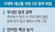 지난해 5월, 방역 당국은 앞서 4월 인천 강화에서 발생한 구제역의 유력한 원인으로 축산농민의 중국 방문을 꼽았다. 구제역 발생국인 중국을 여행하고 오면서 구제역 바이러스를 옮겼을 가능성이 높다는 것. 이후 방역 당국은 공항, 항만 등 국경 검역을 강화하겠다고 발표했다.하지만 구제역은 지난해 11월 경북 안동에서 다시 발생했다. 이번에도 축산농가의 구제역 위험국가 방문이 구제역 발생 원인으로 꼽힌다. 국경 검역이 또 뚫린 셈이다. 실제로 입국 검역이 어떻게 이뤄지고 있는지를 최근 구제역 위험국가를 방문하고 온 축산 관계자들의 이야기를 통해 짚어 봤다.○ 스스로 찾아가 검역하라?지난해 11월 29일, 수도권의 한 축협에서 일하는 A 씨는 조합원 10여 명과 함께 베트남 여행을 떠났다. 이날은 안동에서 구제역이 양성으로 판명된 날이다. 이날도 정부는 “국경 검역을 강화하겠다”고 발표했다.A 씨 일행이 입국한 것은 12월 3일 오전 7시. 게이트 입구에는 빨간색 카펫이 깔려 있었다. 이 카펫은 신발을 소독하기 위해 국립수의과학검역원에서 ‘소독조’로 설치한 것이다. 문제는 그 다음. A 씨는 검역소에 ‘검역질문서’를 제출하면서 여행지를 ‘베트남’이라고 적었다. 통과. 베트남은 구제역 위험국가지만 아무런 제지도 없었다.다음은 입국 심사대. 여권을 제출하고 입국 도장을 받고, 다시 여권을 돌려받는 동안 직원은 아무 말이 없었다. 방역 당국은 5월에 “농장주, 수의사 등 축산 관계자들의 여권 기록을 데이터베이스(DB)화해서 관리하겠다”고 밝혔다. 하지만 농림수산식품부의 DB는 아직도 법무부와 공유되지 않아 공항에서 축산 종사자를 걸러낼 수 없다. 농식품부는 뒤늦게 법무부와 DB를 공유해 축산 관계자의 경우 소독필증을 받아야만 공항을 빠져나갈 수 있도록 할 계획이다.짐을 찾으러 가는 길에 A 씨는 일행과 함께 동물방역과 사무실을 찾았다. 물론 “검역을 하고 가라”고 알려주는 사람은 없었다. A 씨는 “검역을 받아야 한다는 걸 알았기 때문에 스스로 방역과를 찾은 것”이라며 “아무도 알려주는 사람이 없으니 ‘나이 많은 농장주들끼리 입국할 경우 모르고 그냥 나가겠구나’ 하는 생각이 들었다”고 말했다. 한상준 기자 alwaysj@donga.com ▼소가 웃을 공항검역… 축산관계자 9400명 ‘그냥 입국’▼실제로 지난해 5월부터 11월까지 외국에 갔다 온 2만6000여 명의 축산 관계자 중 9400여 명이 방역과를 ‘그냥 지나쳤다’. 방역과 사무실에는 여직원 한 명만 있었다. A 씨 일행은 신발, 옷을 소독했다. 문제는 가방. A 씨는 “가방의 경우 원하는 사람만 하라면서 액체 소독약을 나눠 줬다”고 말했다.○ ‘검역 교육’을 한다지만…충북에서 한우를 키우는 H 씨(56)는 검역을 받지 않은 9400여 명 중 한 명이다. 지난해 여름 중국을 방문했던 그는 “검역을 받아야 한다는 것을 전혀 몰랐다”며 “중국과 동남아가 구제역 위험국가라는 사실도 신문을 보고 알았다”고 말했다. 지난해 5월 정부는 검역 강화 방안을 발표하며 “검역을 하지 않는 농가는 정부 지원사업에서 불이익을 주겠다”고 밝혔다. 그러나 H 씨는 “지금까지 아무 조치가 없었다”고 말했다.그렇다면 검역 교육은 어떻게 이뤄지고 있을까. 제주 제주시 방역 관계자는 “교육이라고 위에서 이야기하고 있는데 ‘교육’보다 ‘안내’라는 표현이 맞을 것”이라며 “관공서와 축협을 통해 공문을 보내고, 농가에 안내 우편물을 보내는 게 전부”라고 말했다.지난해 5월 중국을 방문했던 충남의 농장주 J 씨(55)는 “입국할 때 신고하고 검역을 받으라는 휴대전화 문자메시지가 와서 검역을 받았다”며 “그 전후에 다른 교육이나 안내를 받은 기억은 전혀 없다”고 했다.이같이 주먹구구식 교육이 이뤄지는 동안 축산 종사자들은 꾸준히 외국을 찾고 있다. 농식품부가 파악한 축산 관련 관리 대상은 약 20만 명. 이 중 여권을 보유한 사람은 10만3000명이다. 농협, 축협 조합원들이 많이 이용하는 NH여행사 관계자는 “조합원들이 함께 가는 경우와 이웃 간 친목계에서 가는 경우가 많다”며 “대부분 고령이라서 가깝고 싼 동남아, 중국 지역을 많이 찾는다”고 말했다. 동남아와 중국은 구제역이 창궐하고 있는 지역이다. ○ 관리 사각지대, 외국인 근로자방역 당국은 지난해 1월 경기 포천에서 발생한 구제역은 외국인 근로자의 물품에 의해 바이러스가 전파된 것으로 추정했다. 외국인 근로자는 주로 규모가 큰 양돈, 젖소 농가에서 고용한다. 고용노동부의 허가를 받고 축산업에 배정된 외국인 근로자는 700명. 그러나 불법 체류자도 적지 않기 때문에 정확한 인원은 관련 협회나 정부 모두 파악하지 못하고 있다. 수도권에서 돼지 5000마리를 기르는 Y 씨(60)는 중국인 3명을 고용하고 있다. 이들의 월급은 100만∼150만 원. Y 씨는 “일이 힘들기 때문에 여기에서 일을 하려는 한국 사람이 없어 어쩔 수 없다”며 “비슷한 규모의 양돈농장은 다 마찬가지”라고 말했다.이 같은 외국인 근로자들은 검역 관리 대상에서 비켜나 있다. 방역 교육은 물론이고 휴대전화 문자메시지도 받지 못한다. 입출국은 자유롭다.축산농가의 해외여
