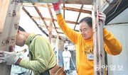 태광산업은 사회공헌활동 ‘따뜻한 집 만들기 프로젝트’의 일환으로 8일 심재혁 부회장(오른쪽) 등 본사 임원 20여 명이 서울 영등포구 신길동의 한부모가정을 방문해 집수리 봉사활동을 했다고 10일 밝혔다. 이들은 이날 10시간 동안 노후시설 철거, 폐기물 정리, 도배, 창호 교체 등 낡은 집을 수리했다. 심 부회장은 “우리 이웃들이 조금이라도 힘을 낼 수 있도록 앞으로도 임원들이 솔선수범할 계획”이라고 말했다. 태광그룹의 금융계열사인 흥국생명 흥국화재 흥국증권 등도 앞으로 임원들이 참여하는 집수리 봉사활동을 할 계획이다.}