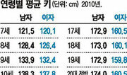 우리나라 20대에서 60대까지 성인 남녀의 평균 키는 남자 171.5cm, 여자는 158.5cm인 것으로 집계됐다. 한국인의 체형은 젊은층을 중심으로 서구화가 진행 중인 것으로 나타났다.지식경제부 기술표준원은 16일 이 같은 내용의 제6차 한국인체치수 조사사업 결과를 발표했다. 2003년 같은 조사에서는 남자가 170.1cm, 여자는 157.3cm였다. 7년 사이에 각각 남자 1.4cm, 여자 1.2cm가 늘어난 것이다.키에 대한 머리길이의 비율(등신)은 20대 남녀 모두 평균 7.3내외로 나타나 40대 이상과 비교할 때 0.1등신 이상 큰 것으로 나타났다. 기표원은 “이는 젊은층을 중심으로 남녀 모두 8등신에 한층 근접해 체형의 서구화가 진행되고 있다는 의미”라고 해석했다. 실제로 20대는 동일한 키의 50대에 비해 다리가 2cm 길었다.여성의 경우 다이어트와 참살이(웰빙) 열풍의 영향으로 비만 인구 비율이 확연히 줄어든 것으로 나타났다. 50대 여성과 60대 여성의 비만비율은 39.4%와 44.5%로 2003년에 비해 각각 10.9%포인트와 11.3%포인트 감소했다. 키는 여성의 경우 12세, 남성은 15세에 이르면 자라는 속도가 둔화해 이후 평균 4∼5cm 자라는 데 그치는 것으로 나타났다. 여성의 성장속도 둔화 연령은 2003년 조사에서는 13세였으나 올해는 12세로 빨라졌다. 초경 이후 여성성장이 둔화되는 점을 감안하면 이는 초경 연령이 1년 정도 빨라진 것을 의미한다고 기표원은 설명했다. 한편 질병관리본부가 2008년에 발표한 국민영양실태조사에서 20대 남녀의 평균키는 각각 174.2cm, 154.9cm였다. 한상준 기자 alwaysj@donga.com}