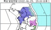 기상청은 29일 오후 7시를 기해 서울·경기·강원 내륙 등에 호우주의보를 발효한다고 밝혔다. 호우주의보는 3시간 강우량이 60㎜ 또는 12시간 강우량이 110㎜ 이상으로 예측될 때 내려진다. 기상청에 따르면 경기 북부지역을 중심으로는 시간당 30~50㎜의 매우 강하고 많은 비가 예상된다. 일부 지역에는 우박이 떨어지는 곳도 있겠다. 계곡이나 하천 물이 불어날 수 있어 주의가 필요하다. 퇴근 시간대에 많은 비가 쏟아지면서 혼잡이 예상된다. 행정안전부도 이날 안전안내 메시지를 통해 “오늘 19시 호우주의보 발효. 대중교통을 이용하시고 빗길 안전에 주의하시기 바란다”고 전했다. 기상청은 “최신 예보를 참고해 비 피해 없도록 대비해달라”고 했다. 그러면서 △산간·방파제 등 위험지역으로부터 대피 △가정 하수구나 집 주변 배수구 점검 △저지대 산사태 위험 지역 등 대비 등을 당부했다.조혜선 동아닷컴 기자 hs87cho@donga.com}