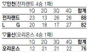 LG 강을준 감독은 최근 연이은 불운에 시달리며 연패에 허덕였다. 지난달 25일 모비스와의 경기에서 상대 선수가 3점슛 라인을 밟고 버저비터를 성공했는데도 심판이 2점이 아닌 3점으로 인정해 역전패를 당했다. 이틀 후 KT와의 경기에서는 막판까지 앞서다 문태영이 눈가를 다친 뒤 자유투 2개를 모두 놓치면서 뼈아픈 역전패를 당했다. 4연패에 빠진 6위 LG는 7위 SK와의 승차가 좁혀져 6강 플레이오프 진출을 장담할 수 없는 처지가 됐다. 위기에 몰린 LG가 5일 창원 홈경기에서 최하위 오리온스를 78-65로 꺾고 한숨 돌렸다. LG는 오리온스와의 맞대결에서 14연승을 질주하며 천적의 면모를 유지했다. 시즌 평균 19점을 넣던 오리온스 글렌 맥거원이 왼쪽 무릎 부상으로 결장한 것도 LG에는 모처럼의 행운이었다. LG는 17승 20패를 기록해 SK(16승 21패)와의 승차를 1경기로 벌렸다. 문태영은 23점을 넣었고 LG 기승호는 11점을 보탰다. 강을준 감독은 “수비부터 집중하면서 좋은 결과를 얻었다. 국내 선수들의 외곽슛이 살아난다면 포스트시즌 가능성은 높아질 것”이라고 말했다. 전반에 아말 맥카스킬(27득점)과 이동준(14득점)만이 득점에 성공한 최하위 오리온스는 6연패. 울산에서 삼성은 애론 헤인즈(26득점, 13리바운드)와 이승준(18득점, 11리바운드)을 앞세워 모비스를 67-65로 힘겹게 눌렀다. 삼성은 22승 15패로 KCC와 공동 3위. 모비스는 1점 뒤진 종료 3초 전 로렌스 엑페리건이 자유투 2개를 모두 놓쳐 역전의 기회를 날렸다. 2위 전자랜드는 안양 방문경기에서 접전 끝에 인삼공사에 80-77로 역전승했다. 전자랜드는 26승 11패로 선두 KT를 2경기 차로 쫓았다.김종석 기자 kjs0123@donga.com}