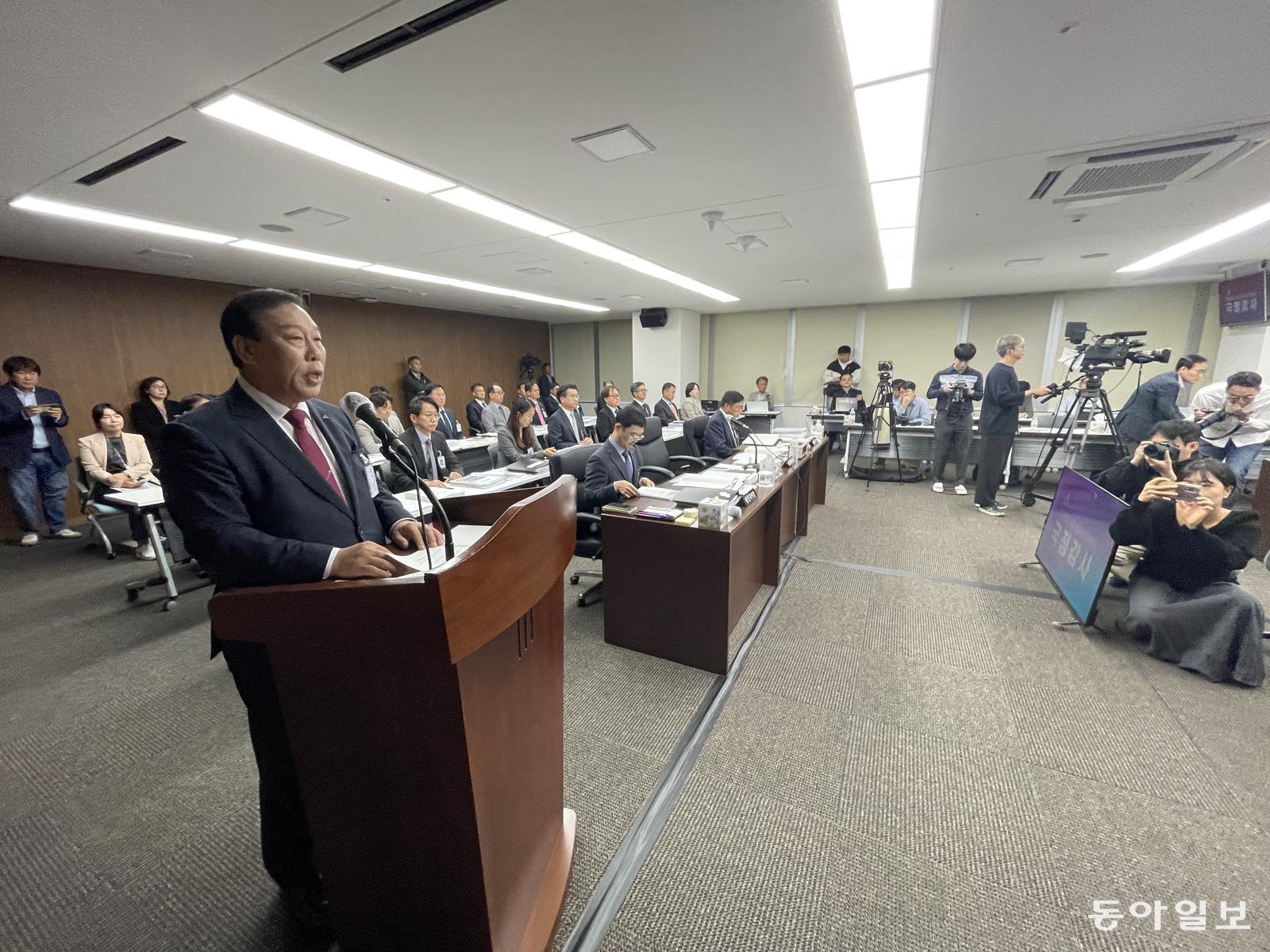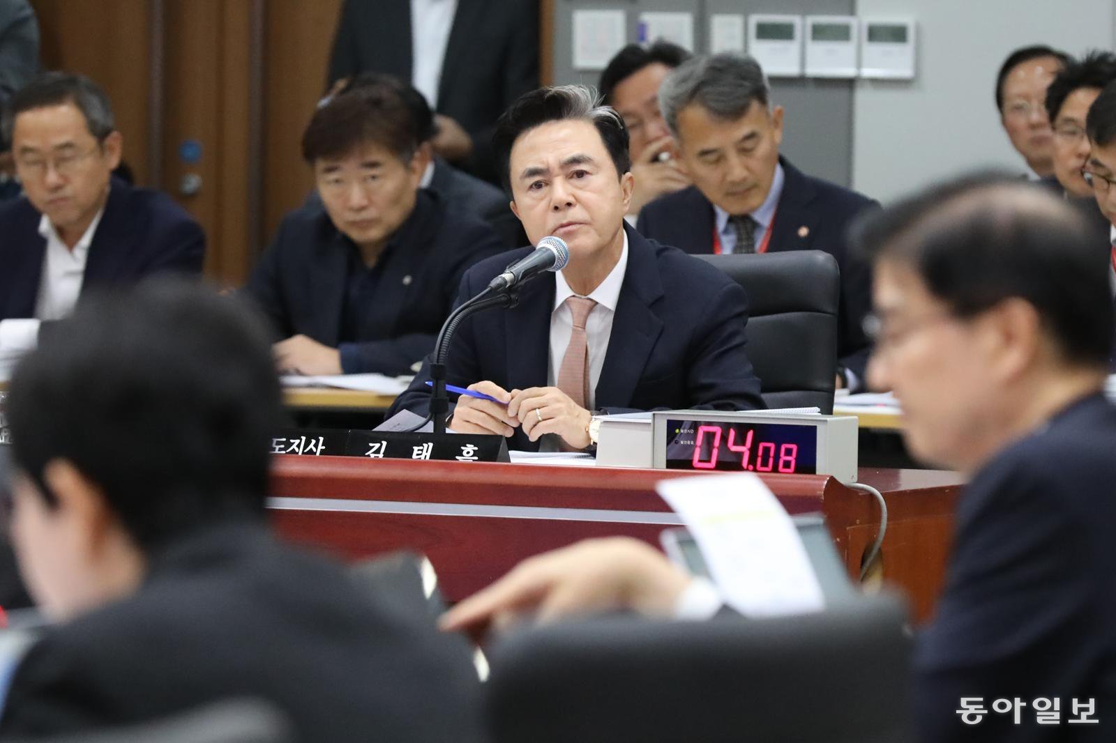 27일 국회 행정안전위원회의 충남 홍성군 충남도청 대회의실에서 열린 충남도 국정감사에서는 대전·충남 행정통합, 농어촌기본소득 시범사업, 지천댐 건설 등 주요 지역 현안이 집중적으로 다뤄졌다.박수민 국민의힘 의원은 “지사께서 ‘지사직을 내려놓더라도 대전·충남을 통합하겠다’고 말했다”며 “도민 입장에서 어떤 기대 효과가 있는지 설명해 달라”고 질의했다. 이에 김태흠 충남도지사는 “대전과 충남의 행정통합은 정부의 ‘5극3특(5대 광역권·3대 특화지구)’ 구상을 가장 강력하게 실현할 수 있는 모델”이라며 “통합이 이뤄질 경우 경상비만 약 2000억 원을 절감할 수 있고, 이를 통해 15개 시·군이 대규모 지역사업을 추진할 재원을 확보하게 된다”고 답했다. 그는 이어 “행정통합특별법이 국회에서 조속히 통과될 수 있도록 적극적인 지원을 요청한다”고 덧붙였다.농어촌기본소득 시범사업을 둘러싸고 여당 의원들과 김 지사 간의 설전도 벌어졌다. 이 사업은 정부가 공모를 통해 선정된 인구감소지역에 국비 40%, 지방비 60%를 매칭해 개인당 월 15만 원 상당의 지역사랑상품권을 지급하는 제도다. 고동진 국민의힘 의원은 “최근 청양이 시범사업 지역으로 선정됐지만, 인구소멸을 막는 근본적 대책이 될 수 있을지 의문”이라며 “재정이 열악한 지자체의 부담만 커질 수 있다”고 지적했다.이에 김 지사는 “전적으로 동의한다. 청양군의 1년 예산이 300억 원 정도인데 군비 30%만 부담해도 연간 160억 원이 든다”며 “현금성 보편 지원은 효율성이 떨어지고, 이런 방식은 사실상 공산주의 정책과 다를 바 없다”고 말했다.그러자 신정훈 국회 행안위원장(더불어민주당)은 “농어촌기본소득에 대한 시각은 다를 수 있지만, 공산주의라는 표현은 부적절하다”며 “공직자의 발언으로는 지나치다”고 지적했다.충남도의 최대 현안 중 하나인 지천댐 건설 문제도 논의됐다. 김 지사는 “현재 충남의 물 공급은 대청댐 80%, 보령댐 20%에 의존하고 있다”며 “2030년에는 2억 톤이 넘는 물이 부족할 것으로 예상돼, 지천댐 건설은 불가피하다”고 강조했다.한편 김 지사의 답변 태도를 두고 여야 간 충돌이 벌어지면서 국감이 한때 파행되기도 했다. 한병도 더불어민주당 의원은 “지난여름 기록적 폭우로 충남 전역이 침수 피해를 입었을 때 지사가 해외 출장을 떠났다”며 “도의회가 외유성 출장이라고 비판했는데, 지사는 ‘정치적이고 불순한 비판’이라며 반박했다. 출장 사유와 현지 대응을 구체적으로 설명해야 했다”고 비판했다. 이에 김 지사는 “출장 전 복구 계획을 모두 보고했고, 전쟁 중이라도 가야 할 출장은 가야 한다”고 반박했다.양측의 고성이 이어지자 신 위원장은 “질의하는 의원보다 지사 목소리가 더 크다”며 “계속 끼어들면 국감이 진행되지 않는다”고 제지했고, 결국 개회 30분 만에 정회를 선포했다.이날 오후 진행된 충남경찰청 국감에서는 △캄보디아 송환 피의자 수사 현황 △충남지역 교통사고 및 청소년 범죄 증가 추세 △중대재해사고 예방 인력 확보 문제 △경찰의 교통법규 위반 사례 △전동킥보드 단속 강화 방안 등이 집중적으로 다뤄졌다.홍성=이정훈 기자 jh89@donga.com}