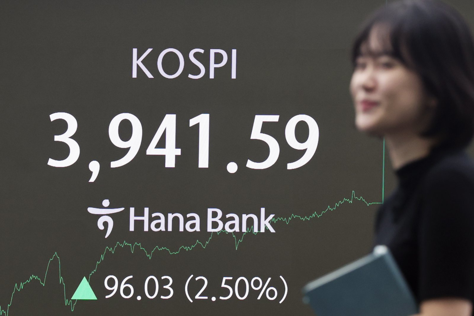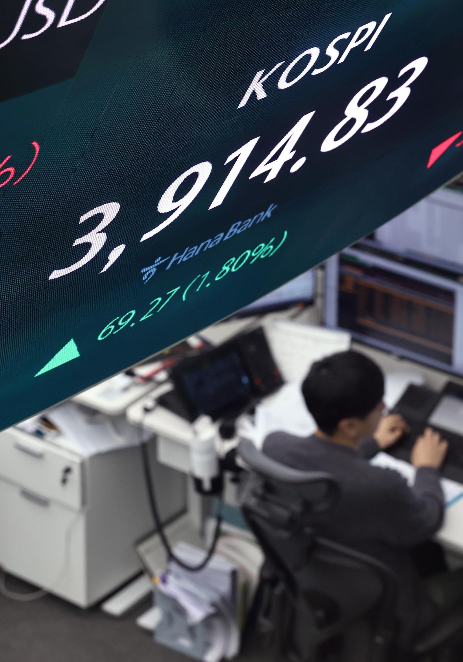 미중 정상회담이 결정되고 미국 기업들이 ‘깜짝 실적’을 내며 미 증시에 훈풍이 불자 코스피가 3,900선을 돌파해 사상 최고치를 경신했다. 코스피 종가는 이틀 만에 사상 최고치 기록을 다시 썼다. 삼성전자와 SK하이닉스의 합산 시가총액은 1000조 원을 돌파했다.24일 한국거래소에 따르면 코스피는 전 거래일에 비해 2.5% 급등한 3,941.59에 장을 마쳤다. 코스피는 1.24% 오른 3,893.23으로 출발해 장 중 3,951.07까지 올랐다. 전일 세운 장 중 최고치(3,902.21)를 하루 만에, 종가 기준으로는 22일 최고치(3,883.68)를 이틀 만에 갈아 치웠다. 개인이 2조3억 원어치 넘게 순매도했지만, 기관과 외국인이 각각 1조4054억 원, 5755억 원어치 순매수하며 코스피를 끌어올렸다.삼성전자와 SK하이닉스도 동반 상승해 합산 시총이 사상 처음으로 1000조 원을 넘겼다. 삼성전자는 전 거래일 대비 2.38% 오른 9만8800원이었다. SK하이닉스는 6.58% 오른 51만 원으로 사상 최고치를 나타냈다.코스피가 질주한 이유는 도널드 트럼프 미국 대통령이 시진핑(習近平) 중국 국가주석을 30일 만난다고 백악관이 23일(현지 시간) 발표해 미중 무역갈등 우려가 완화됐기 때문으로 보인다. 이 소식과 함께 미국 인텔 , GM 등의 호실적에 이날 뉴욕증시의 3대 주가지수가 강세로 장을 마쳤다. 다우존스30산업평균지수는 전일보다 0.31% 오른 46,734.61에 거래를 마감했다. 스탠더드앤드푸어스(S&P)500지수도 0.58% 뛴 6,738.44, 나스닥종합지수는 0.89% 상승한 22,941.80을 나타냈다.미중 무역 갈등이 재점화하더라도 코스피는 4,000을 넘길 것이라는 전망도 나온다. 정희찬 삼성선물 연구원은 “미국과 중국이 중대한 시기에 정상회담을 확정하며 연말까지 증시 방향성을 정하는 중요한 역할을 할 것으로 예상된다”며 “양국 갈등이 완화될 것으로 보이면 연말까지 랠리 가능성이 높으나, 반대의 경우 무역전쟁 우려로 투자심리가 악화할 우려가 있다”고 분석했다. 안동현 서울대 경제학부 교수는 “문제는 4,000선 돌파 이후인데 외국인 투자자 동향을 살펴야 할 것”이라며 “외국인들이 코스피가 더 이상 오를 이유가 없다고 판단하면 한국시장을 정리할 가능성이 있다”고 내다봤다.한편 이날 오전 구윤철 부총리 겸 기획재정부 장관은 이창용 한국은행 총재, 이억원 금융위원장, 이찬진 금융감독원장과 함께 ‘시장상황점검회의’를 열고 국내 금융시장이 안정적이라고 평가하면서도 외환시장 변동성에 주시하겠다고 밝혔다.이호 기자 number2@donga.com세종=김수연 기자 syeon@donga.com}
