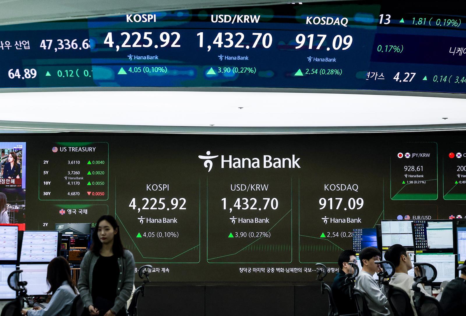 사상 최고가를 경신했던 코스피가 하루 만에 2% 이상 하락하며 숨고르기에 들어갔다. 4일 코스피는 전 거래일 대비 2.37% 하락한 4,121.74로 장을 마감하며 하루 만에 4,200 선을 내줬다. 개인이 2조6891억 원 순매수했지만 외국인이 2조2227억 원, 기관이 4986억 원 순매도하며 차익 실현에 나섰다. 최근 상승을 주도한 삼성전자와 SK하이닉스가 나란히 5%가량 하락했다. 한미 관세협상 타결 이후 강세였던 자동차, 조선도 동반 약세였다. 도널드 트럼프 미국 대통령이 최근 언론 인터뷰에서 “가장 진보된 칩은 미국 외에 누구도 갖지 못하게 할 것”이라고 발언해 시장의 기대에 찬물을 끼얹었다. 또 중국 홍콩 일본 대만 등 아시아 증시가 전반적으로 부진하며 장중 낙폭이 커졌다. 한동안 부진했던 바이오주는 강세를 보였다. 바이오가 시가총액 순위 상위권을 차지하는 코스닥은 전 거래일 대비 1.31% 상승한 926.57로 장을 마쳤다. 2022년 4월 21일(929.68) 이후 가장 높은 수준이다. 외국인과 기관은 코스피에서 순매도했지만 코스닥에선 각각 2300억 원, 1661억 원 순매수했다.홍석호 기자 will@donga.com}