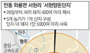 《 경북 안동시에서 구제역이 발생했다. 정부가 6월 구제역 종식선언을 한 지 5개월여 만으로 올해 들어 1월 경기 포천시, 4월 인천 강화군에 이어 세 번째다. 구제역이 한 해 동안 각기 다른 시기에 걸쳐 세 차례나 발생한 것은 처음이다. 농림수산식품부는 28일 안동시 와룡면 서현양돈단지 내 돼지농장 2곳에서 새끼 돼지 400여 마리가 갑작스럽게 죽고 구제역 의심 증상을 보인다는 신고가 접수돼 국립수의과학검역원(수과원)에서 정밀 조사를 벌인 결과 양성으로 판명됐다고 29일 밝혔다. 이에 따라 농식품부는 위험지역(발생지역 반경 3km) 안에 있는 소, 돼지 2만3000여 마리에 대한 도살처분에 들어갔고 가축질병 위기경보 단계를 ‘주의’로 격상했다. 》이날 오후 최초 발생 농장에서 서남쪽으로 8km가량 떨어진 안동시 서후면의 한 한우농가에서도 의심 신고가 접수돼 구제역 바이러스가 이미 위험지역 바깥으로 확산됐을 가능성도 있어 방역당국과 축산농가들을 더욱 긴장시키고 있다.○ 내륙에서, 하필 돼지에게서…최초 발생 농장 2곳에서 이상 징후가 처음 나타난 것은 26일. 새끼 돼지들이 갑자기 폐사하자 농장에서는 경북 가축위생시험소 북부지소에 신고했다. 농식품부는 “26일 구제역 간이 검사에서는 음성으로 나타났다”며 “해당 농장에서 23일 물탱크 청소 시 염소 소독제를 사용한 점 등을 미뤄 염소 소독제 중독으로 추정하고 이동제한 조치를 내렸다”고 설명했다. 그러나 폐사가 계속되자 농장 측은 28일 수과원에 신고했고 29일 구제역 양성으로 판명됐다. 수과원은 “항체는 감염 뒤 2주가량 지나야 형성된다”며 “검사 결과 항원 양성, 항체 음성으로 판명된 점에 비춰 보면 감염 시점이 오래되지 않은 것으로 보인다”고 했다. 집단 폐사에 대해서는 “어미 돼지가 감염될 경우 새끼 돼지도 자연 감염된다”며 “면역력이 약한 새끼 돼지가 집단으로 폐사한 것으로 보인다”고 했다. 문제는 안동시가 지금까지 구제역이 한 번도 발생하지 않았던 지역인 데다 앞서 발생한 포천시, 강화군과 달리 내륙 한복판에 위치해 있다는 점이다. 또 소보다 바이러스 전파력이 3000배가량 높은 돼지에게서 발생했다는 것도 악재(惡材)다. 농식품부는 초기 방역에 실패할 경우 구제역 확산을 막을 수 없다고 보고 이동 제한 및 소독약 살포 등 방역에 총력을 기울이기로 했다.그러나 최초 발생 지점에서 8km가량 떨어진 한우농가에서도 의심 신고가 접수됨에 따라 이미 구제역이 위험지역을 넘어 안동시 일대에 광범위하게 퍼졌을 가능성도 배제할 수 없다. 최초 발생 농가로부터 반경 3km 이내에는 소 돼지 2만3000여 마리가, 3∼10km 이내에는 4만여 마리가 있다. 따라서 구제역이 확산되면 도살 규모가 4월 발생한 구제역(4만9874마리)보다 더 커질 수 있다.이날 현장을 찾은 유정복 장관이 “안동은 구제역 발생 사례가 없으니 농식품부와 수과원이 긴밀히 협조해 초동 대처를 철저히 하라”며 농식품부 축산국장과 수과원장이 현장에 남아 방역 대책을 점검하도록 한 것도 이러한 절박감 때문이다. 경북도청 역시 예비비 15억 원, 570여 개 공동방제단을 투입해 도내 축산농가에서 집중 소독을 벌이기로 했다. 도 관계자는 “그동안 구제역이 발병한 지역이 아니어서 바짝 긴장하고 있다”고 전했다.○ 축산 농가, 최악의 한 해이번 구제역 발생에 따라 농식품부는 인접 지역의 가축시장을 당분간 폐쇄하기로 했다. 농식품부는 “경북, 충북, 강원의 가축시장에 대한 폐쇄조치를 내릴 것”이라며 “더 확산되면 전국 가축시장을 폐쇄할 수도 있다”고 밝혔다. 1월과 4월에도 전국의 가축시장이 폐쇄된 바 있다. 따라서 두 차례 구제역으로 홍역을 앓았던 전국 축산농가의 피해는 더 커질 것으로 보인다. 당장 구제역 재발로 한국은 9월 획득했던 구제역 청정국 지위를 잃게 됐고 재개됐던 돼지고기의 해외 수출도 다시 중단될 상황에 처했다.한편 농식품부는 이날 구제역 발생 원인에 대한 역학조사에 착수했다. 최초 발생 농가 2곳에서는 중국, 베트남 출신 외국인 노동자 3명이 일하고 있다. 농식품부는 “올해 중국, 몽골, 일본 등 인접 국가에서 수시로 구제역이 발생한 점 등으로 미뤄 구제역이 해외에서 유입됐을 가능성도 있다”며 “농가 관계자의 입출국 기록, 수의사 이동 경로 등에 대한 조사를 시작했다”고 밝혔다.한상준 기자 alwaysj@donga.com안동=장영훈 기자 jang@donga.com:: 구제역(口蹄疫) ::소 돼지 양 염소 사슴처럼 발굽이 둘로 갈라진 동물(우제류·偶蹄類)이 걸리는 급성 바이러스성 가축질병. 구제역에 걸린 가축은 입술, 잇몸, 입 안, 젖꼭지, 발굽 사이에 물집이 생기며 심하게 앓거나 폐사하는데 폐사율은 50%가 넘는다. 인수공통전염병이 아니기 때문에 사람에게는 전파되지 않는다.}