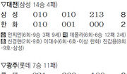 사실상 선두 탈환은 어려운 상황이지만 5일 롯데와 사직경기를 치른 삼성 선동열 감독은 약간의 위안을 얻었을 것 같다. 선발 투수 장원삼이 안정된 투구를 보인 데다 팔꿈치 부상으로 전력에서 이탈했던 포수 진갑용이 공수에 걸쳐 완벽하게 부활했기 때문이다. 장원삼은 1회 고전했다. 선두 타자 김주찬을 유격수 실책으로 내보낸 뒤 안타 3개와 볼넷 1개로 4점을 내준 것. 하지만 2회부터 4회까지 3이닝을 퍼펙트로 막은 것을 비롯해 5와 3분의 1이닝을 4안타 3볼넷 4삼진 4실점(2자책점)으로 잘 던졌다. 시즌 13승을 수확한 장원삼은 자신의 한 시즌 최다승 기록(종전 2006년, 2008년 각 12승)을 새로 썼다. 진갑용의 부활은 더욱 반갑다. 8번 타자로 나선 진갑용은 2-3으로 뒤진 2회 상대 선발 김수완을 상대로 시즌 10호 홈런을 터뜨리는 등 4타수 4안타를 기록했다. 삼성은 6회에는 조동찬을 시작으로 이영욱 강봉규 최형우 등 네 타자가 연속으로 2루타를 치는 진기록도 세웠다. 네 타자 연속 2루타는 통산 두 번밖에 나오지 않은 기록이다. 박한이는 1회 투런 홈런에 이어 3회 솔로 홈런을 치며 2001년 데뷔 후 10번째 시즌에서 처음으로 연타석 홈런을 기록했다. 장단 20안타로 롯데 투수들을 두들긴 삼성은 12-5로 대승했다. 두산과 KIA의 잠실경기에서는 3-4로 뒤진 9회 2사 1루에서 터진 대타 최준석의 끝내기 역전 홈런에 힘입어 두산이 5-4로 이겼다. 자신의 첫 끝내기 홈런이자 올 시즌 처음 나온 대타 끝내기 홈런. 최근 4연패에 빠진 KIA는 LG에 5위를 내줬다. SK와 한화의 문학경기는 폭우로 취소됐다.이헌재 기자 uni@donga.com}