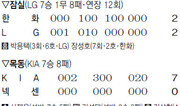 아퀼리노 로페즈의 호투, CK(최희섭-김상현)포의 맹타, 절묘한 작전 성공…. 25일 광주구장에서 열린 LG와의 경기 중반까지만 해도 지난해 한국시리즈 우승팀 KIA의 저력이 나오는 듯했다. 외국인 투수 로페즈는 1회초 3점을 내줬지만 이후 안정된 투구 내용을 보이며 7이닝을 4실점으로 잘 막았다. 김상현은 2회 2점 홈런을 쳤고, 최희섭은 안타 2개를 때렸다. 3-4로 뒤지던 7회에는 김상훈과 박기남의 대타 작전 성공에 상대 실책까지 더해 7-4로 경기를 뒤집었다. 하지만 올해의 KIA는 지난해에 비해 2%가 부족했다. 허약해진 중간 계투진과 어설픈 수비가 또 발목을 잡았다. 지난해 22세이브에 평균자책 0.53을 기록했던 유동훈은 8회 등판하자마자 안타 2개와 볼넷 1개로 무사만루의 위기를 자초하고 마운드를 내려갔다. 박경수의 2타점 적시타로 1점 차로 쫓긴 상황에서 이택근 타석에서는 유격수 이현곤의 실책이 나왔다. 계속된 1사 만루에서 윤상균의 2루수 앞 땅볼 때 이현곤의 실책성 플레이로 더블플레이에 실패한 것도 뼈아팠다. LG는 이 찬스를 놓치지 않고 박용택의 희생플라이로 결승점을 뽑았다. 한 경기가 아쉬운 KIA는 결국 7-8로 역전패했고 4위 롯데와의 승차는 5.5경기로 벌어졌다. 선두 SK는 넥센에 6-2로 역전승하며 이날 경기가 없던 2위 삼성과의 승차를 2.5경기로 벌렸다. 두산은 한화를 10-6으로 꺾었다.이헌재 기자 uni@donga.com}