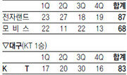 모비스가 지난 정규 시즌 우승을 차지한 데는 전자랜드의 역할이 컸다는 얘기가 있었다. 당시 모비스는 전자랜드에 6전 전승을 거뒀다. 올 시즌에는 이런 천적 관계가 뒤바뀔지도 모른다. 지난 시즌 통합챔피언 모비스는 함지훈의 입대와 간판스타 양동근의 아시아경기 대표팀 차출로 전력이 약화됐다, 모비스를 탄탄하게 이끌던 유재학 감독도 대표팀 사령탑으로 떠났다. 반면 지난 시즌 9위였던 전자랜드는 신기성의 영입과 최고의 혼혈선수 문태종까지 가세해 일약 우승 후보로 꼽힌다. 21일 울산에서 시즌 처음으로 맞붙은 모비스와 전자랜드는 달라진 양 팀의 분위기가 그대로 드러났다. 전자랜드가 87-68로 완승을 거두며 최근 3연승의 상승세를 탔다. 전자랜드는 모비스 징크스와 함께 방문경기 7연패에서도 벗어나며 3승 1패로 이날 오리온스를 누른 KT와 공동 선두를 유지했다. 전자랜드는 허버트 힐(26득점, 11리바운드), 신기성(15득점), 문태종(12득점, 8리바운드), 서장훈(12득점, 7리바운드) 등이 고르게 공격과 리바운드에 가세했다. 전자랜드 유도훈 감독은 “자존심을 회복하려고 선수들이 많은 훈련을 했다. 서장훈에 의존하는 단조로운 공격 패턴에서 벗어나 고참과 신예들이 조화를 이루고 있다”고 말했다. 홈경기 8연승 행진을 마감한 모비스는 2연패에 빠졌다. 대구에서 KT는 강력한 수비에 힘입어 오리온스를 83-73으로 꺾었다. KT는 박상오(24득점), 표명일(18득점), 조동현(14득점), 제스퍼 존슨(12득점)이 번갈아 활약하며 대표팀으로 빠진 조성민의 공백을 메웠다. KT 전창진 감독은 “6일 동안 4경기를 치르게 돼 초반에 식스맨을 기용하는 등 힘들었다. 밀착 마크와 집중력이 살아나 이길 수 있었다”고 분석했다. KT는 2쿼터를 37-46으로 뒤졌지만 후반 들어 오리온스의 실책이 쏟아진 틈을 노려 점수차를 벌리기 시작해 3쿼터에서 67-61로 승기를 잡았다. KT가 3쿼터에 30점을 집중시키는 사이 오리온스는 15점에 그쳤다.김종석 기자 kjs0123@donga.com}