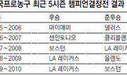 ■ 美프로농구 오늘 점프볼지난 시즌 셋이 합쳐 경기당 평균 80점을 터뜨렸다. 3명의 연봉 합계만도 4320만 달러(약 483억 원). 미국프로농구 마이애미에서 새로운 삼총사로 떠오른 스몰포워드 르브론 제임스(203cm), 파워포워드 크리스 보시(211cm), 슈팅가드 드웨인 웨이드(193cm) 얘기다. 이들은 27일 개막하는 2010∼2011시즌에 환상의 삼각편대로 손꼽힌다. 마이애미는 지난 시즌 종료 후 클리블랜드에서 뛰던 제임스와 토론토에서 자유계약선수로 풀린 보시를 받아들여 전력을 끌어올렸다. 특히 거취를 둘러싼 비상한 관심 속에 미국 전역에 TV로 생중계되는 가운데 마이애미 이적을 발표한 제임스는 우승 욕심에 연고지 클리블랜드를 배신했다는 비난 여론을 잠재우며 처음으로 챔피언 반지의 꿈을 이룰지 관심이 집중된다. 미국의 스포츠 전문 케이블TV ESPN의 전문가 25명 우승 후보 설문조사에서 마이애미는 지난 시즌 챔피언 LA 레이커스와 나란히 14표를 얻었다. 보스턴은 1표를 얻는 데 그쳤다.비록 관심도에서는 같은 동부 콘퍼런스의 마이애미에 밀렸어도 보스턴 역시 패권을 다툴 전통의 강호다. 시즌 개막전에서 맞붙는 마이애미와 보스턴은 올스타 출신 선수만도 13명에 이른다. 지난 시즌 레이커스와의 챔피언결정전에서 3승 4패로 패한 보스턴은 케빈 가넷, 폴 피어스, 레이 앨런의 빅3가 건재한 데다 샤킬 오닐과 저메인 오닐까지 영입해 골밑을 강화했다. 서부 콘퍼런스에서는 레이커스의 독주가 예상된다. 3연패를 노리는 레이커스는 명장 필 잭슨 감독을 중심으로 코비 브라이언트와 파우 가솔 등 호화 멤버의 변함없는 활약이 기대된다. 레이커스가 타이틀 방어에 성공하면 라이벌 보스턴이 갖고 있는 역대 최다 우승 기록(17회)과 타이를 이루기에 농구 왕조의 부활을 꿈꾸고 있다. 브라이언트가 정상에 대한 야망을 이루면 농구 황제 마이클 조든의 통산 6회 우승과도 어깨를 나란히 한다. 댈러스와 오클라호마는 레이커스의 대항마로 주목받고 있다. 팀당 82경기를 치르는 정규 시즌은 4월까지 열리며 동부와 서부 콘퍼런스 상위 8개 팀이 플레이오프에 들어간다.김종석 기자 kjs0123@donga.com}