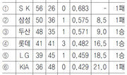 두산은 10일 낯선 경험을 했다. LG와의 경기에서 무려 6개의 홈런을 허용하며 6-16으로 대패한 것도 그렇지만 이날 넥센에 승리한 삼성에 2위 자리를 내준 게 더욱 충격적이었다. 두산이 올 시즌 3위로 떨어진 것은 이날이 처음이었다. 현행 포스트시즌 제도에서 정규시즌 2위와 3위는 하늘과 땅 차이다. 2위는 플레이오프에 직행하지만 3위는 4위 팀과 준플레이오프를 치러야 한다. 두산은 2007년과 2008년 2년 연속 2위로 오른 뒤 플레이오프를 통과했지만 두 해 모두 한국시리즈에 직행한 SK의 벽에 가로막혔다. 올해 한국시리즈 우승을 노리는 두산은 그래서 올해 정규시즌 1위를 목표로 했다. 개막 후 9경기에서 8승 1패를 기록하며 한동안 선두를 달리기도 했다. 하지만 4월 중순 SK에 선두 자리를 내줬고 급기야 삼성에까지 추월당한 것이다. 두산이 못했다기보다 삼성이 더 잘했다. 두산도 꾸준히 승수를 쌓았지만 삼성은 지난달 23일 두산전부터 무려 12연승을 거뒀다. 8일 SK전에서 패하며 연승이 끊겼지만 9, 10일 넥센과의 2경기를 모두 이기는 폭발적인 상승세를 이어가면서 역전에 성공했다. 큰 이변이 없는 한 SK의 정규 시즌 1위는 거의 확정적이다. 남은 것은 치열한 4강 싸움과 그보다 더욱 불꽃 튈 것으로 보이는 삼성과 두산의 2위 싸움이다. 11일에도 삼성과 두산은 각각 넥센과 LG를 상대로 승리를 거두며 0.5게임 차 살얼음판 승부를 이어갔다. 삼성은 7회까지 0-1로 뒤져 패색이 짙었으나 8회 2사 3루에서 오정복이 넥센 마무리 손승락을 상대로 동점 적시타를 쳐내며 기사회생했다. 1-1로 팽팽하던 9회말 1사 만루의 위기를 무사히 벗어난 삼성은 연장 10회초 2사 3루에서 이영욱이 깨끗한 좌중간 적시타를 때려 역전에 성공했다. 전날까지 LG에 2연패했던 두산도 5-0으로 낙승했다. 1회 김동주의 중전 안타로 선취점을 뽑은 두산은 3회와 4회 한 점씩을 더 달아난 데 이어 8회 이성렬의 2타점 적시타로 승부에 쐐기를 박았다. 두산 외국인 선발 켈빈 히메네스는 7이닝 무실점 호투로 11승째를 따내며 류현진(한화) 김광현(SK) 양현종(KIA) 등과 함께 다승 공동 선두에 올랐다. 삼성과 두산은 2위 자리를 두고 13일부터 대구 구장에서 3연전을 펼친다. KIA-한화의 광주 경기와 롯데-SK의 사직 경기는 우천으로 순연됐다.이헌재 기자 uni@donga.com}