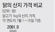 18일 초복(初伏)을 앞두고 양계 농가의 한숨이 깊어졌다. 초복은 삼복(三伏)의 닭고기 매출 중 절반을 차지할 정도로 대목으로 꼽히지만 최근 육계(肉鷄) 시세가 지난해 같은 기간보다 40%나 급락했기 때문이다. 16일 축산물품질평가원에 따르면 이달 1∼15일 닭고기 1kg의 산지 가격은 평균 1247.6원으로 지난해 같은 기간(2091.9원)보다 40.4%나 떨어졌다. 육계 가격이 이렇게 하락한 데는 올해 월드컵 특수를 노리고 양계농가들이 닭을 많이 키워 공급이 늘어난 영향이 크다. 통계청에 따르면 2분기(4∼6월) 육계 사육 두수는 1억359만3000마리로 1분기보다 33.0% 증가했다. 하지만 올해 월드컵 경기가 대부분 새벽에 열린 데다 한국팀의 성적까지 부진하면서 치킨 소비가 크게 늘지 않았다. 한국외식산업연구원에 따르면 월드컵 개막 이후 2주 동안 치킨 매출은 월드컵 개막 전 2주 전보다 2.1% 상승하는 데 그쳤다. ‘월드컵 특수’가 사실상 없었던 셈이다. 2010년 남아프리카공화국 월드컵 당시에는 치킨 소비가 급증하면서 육계 물량이 모자라 ‘육계 파동’까지 일었다. 대한양계협회 관계자는 “올해는 조류인플루엔자(AI)에도 불구하고 닭 소비가 급감하지 않는 등 그럭저럭 잘 버텼지만 월드컵 이후 출하되지 못한 육계가 많아지면서 시세가 생산 원가에도 못 미쳐 농가들이 시름에 빠져 있다”고 말했다. 또 ‘복날에는 삼계탕을 먹어야 한다’는 통념이 사라지고 전복 등 수산물이 인기를 누리는 추세도 육계 가격을 끌어내리고 있다. 롯데마트가 최근 3년간 초복 일주일 전 매출을 분석한 결과 전복의 매출액이 약 4배(303.4%)로 폭증한 것으로 나타났다. 변지현 롯데마트 마케팅전략팀장은 “초복에 전복과 장어, 낙지 등 ‘보양 수산물’이 인기를 끌면서 수산물 수요가 살아나고 있다”고 말했다. 이에 따라 유통업계는 닭 소비 촉진을 위해 다양한 이벤트를 벌이고 있다. 홈플러스는 17, 18일 이틀 동안 국내산 생닭 20만 마리를 마리당 1500원에 판매한다. 이는 기존 가격보다 40%가량 저렴한 수치다. 이마트는 22일까지 백숙용 생닭을 통째로 팔지 않고, 쇠고기나 돼지고기처럼 무게를 달아 판매한다. 1kg 가격이 3800원으로 기존 백숙용 생닭(4980원)보다 23.7% 저렴하다. 롯데슈퍼는 초복 행사를 예년보다 열흘 앞당겨 9일부터 시작했고, 오픈마켓인 11번가는 14일 무(無)항생제 영계 1000마리를 990원에 한정 판매하기도 했다.김유영 기자 abc@donga.com}