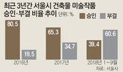 대형 건물 안팎에 설치하는 조형물이나 회화 등을 심의하는 서울시 미술작품심의위원회(심의위)가 올 들어 부쩍 깐깐해졌다. 지난해 11월 심의위를 개편한 뒤로 건축물 미술작품 설치 승인 비율이 이전보다 크게 줄어들었다. 16일 동아일보가 서울시 시보를 통해 2016년부터 올 9월까지 이뤄진 건축물 미술작품위원회 심의 결과를 확인한 결과 올 1∼9월 심의에서 부결된 작품 수는 189건으로 전체(312건)의 60.6%를 차지했다. 반면 승인(조건부 승인 포함)을 받은 작품 수는 123건으로 전체의 39.4%에 그쳤다. 2016년 및 2017년과 비교하면 승인율이 30∼40%포인트 낮아졌다. 지난해에는 202건 중 65.3%인 132건이 승인됐고 부결은 70건으로 34.7%에 그쳤다. 올해 심사 결과와 비교하면 승인율이 25.9%포인트 떨어진 것이다. 2016년(승인율 80.5%)과 비교하면 41.1%포인트 감소했다. 그러자 미술가들 사이에서는 “갑자기 부결 비율이 높아져 대처하기가 난감하다”고 하소연하는 목소리가 늘고 있다. 한 설치미술가는 “작품 설계를 두 번 바꾸면 비용이 1000만 원 가까이 든다. 작품이 최종 부결되면 계약금을 반환하거나 건축주로부터 소송을 당할 수도 있어 불안하다”고 말했다. 서울시를 찾아가 자신의 경력 등을 설명하며 설치 부결 이유를 묻는 경우도 있다. 작품이 여러 번 부결되는 일이 늘면서 작가들의 스트레스뿐만 아니라 서울시의 고민도 생기고 있다. 재심사 건수가 늘면서 매월 심의위를 개최할 때마다 심사해야 하는 건수가 늘고 있기 때문이다. 실제로 올해 9월까지 심사 건수는 312건으로 이미 2016년 272건, 2017년 202건을 넘어섰다. 반면 서울시는 공공미술을 활성화하고 작품의 수준을 높이겠다는 제도의 도입 취지가 잘 적용되고 있다고 보고 있다. 건축물 미술작품은 문화예술진흥법에 따라 연면적이 1만 m² 이상인 건물을 신축하거나 증축할 때 설치하도록 돼 있다. 규모별로 사업비의 최고 0.7%를 투자해 회화나 조각 등 미술작품을 설치한다. 그렇지 않으면 설치비용의 70%에 해당하는 금액을 문예진흥기금으로 출연해야 한다. 의무적으로 작품을 설치하도록 돼 있다 보니 종종 ‘관성적인 작품이 많다’ ‘수준 미달의 작품이 있다’는 비판을 받기도 했다. 이에 대응해 서울시는 지난해 11월 관련 조례 시행에 맞춰 작품을 평가하는 심의위의 기능과 역할을 강화했다. 위원 수를 80명에서 20명으로 정예화하고 80명 중 일부가 돌아가면서 참석했던 회의 운영 방식도 전체 위원 참석을 원칙으로 바꿨다. 심의 접수 시기도 건축물 허가 및 승인 이후였던 것을 이전으로 바꿔 위원들에게 여유를 줬다. 준공일자 부담에 위원들이 ‘떠밀리기식’으로 승인하지 않도록 한 것이다. 서울시 관계자는 “건축물 미술시장의 질이 떨어지고 시장이 혼탁해지면 제도 자체가 위협받을 수 있다는 인식 아래 제도를 강화한 것”이라고 설명했다. 한편 미술가들은 설치가 완료된 작품들을 사전에 참고할 수 있도록 서울의 자치구들이 ‘공공미술포털’에 작품 관련 정보를 많이 올려 주기를 희망하고 있다. 한국문화예술위원회에서 운영하는 공공미술포털은 설치가 완료된 작품들의 사진과 구체적인 작품 정보를 공개하는데 작품 정보를 업로드해야 하는 각 자치구의 활동이 저조하다는 것이다. 올해 서울에 설치된 작품 중 실제로 포털에 올라온 사례는 영등포구 3건, 마포구 1건이 전부였다. 서울시 관계자는 “올해 종로구와 중구에 설치된 작품을 전수조사하고 있다. 예산을 투입해 순차적으로 데이터를 등록해 나갈 것”이라고 말했다.권기범 기자 kaki@donga.com}