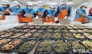 정월 대보름을 하루 앞둔 25일 광주 북구 종합자원봉사센터에서 봉사자들이 홀몸어르신 가정에 전달하기 위해 조상들이 즐겨 먹던 오곡밥과 각종 나물류를 만들어 포장하고 있다. 박영철 기자 skyblue@donga.com}