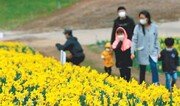 28일 전남 구례군 산동면 지리산 호수공원의 치즈랜드에서 상춘객들이 수십만 송이의 노란 수선화가 만개한 꽃길을 지나가고 있다. 박영철 기자 skyblue@donga.com}