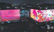 11일 광주 북구 용봉동 중외공원 내 비엔날레 전시장 외벽에 미디어아티스트 작가의 ‘빛의 나무’ 미디어 파사드 작품이 전시되고 있다. 비엔날레 미디어 파사드는 5월 31일까지 운영된다. 박영철 기자 skyblue@donga.com}