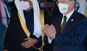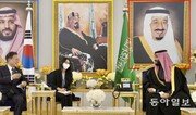 사우디아라비아를 공식 방문한 문재인 대통령(오른쪽)이 18일(현지 시간) 수도인 리야드에서 열린 ‘한-사우디 스마트 혁신성장 포럼’에 입장하고 있다. 문 대통령은 이날 제조·에너지, 보건의료, 수소 등 협력 확대를 위한 업무협약(MOU) 14건을 체결했다. 특히 두산중공업은 사우디 국영 석유회사 아람코, 사우디 산업투자공사 두수르와 ‘선박 기자재 등 주조 및 단조 합작법인 설립 계약’을 체결했다. 문 대통령은 19일에는 걸프협력회의(GCC)의 나예프 알 하즈라프 사무총장을 접견하고 GCC와의 자유무역협정(FTA) 협상 재개를 발표했다. 리야드=양회성 기자 yohan@donga.com}