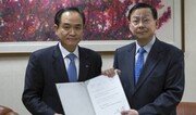 금호아시아나그룹이 중국 쓰촨 성에서 발생한 지진 피해 복구에 써 달라며 성금 100만 위안(약 1억8000만 원)을 주한 중국대사관에 전달했다. 25일 서울 종로구 효자동 주한 중국대사관에서 성금 전달식을 가진 김창규 금호타이어 사장(왼쪽)과 장신썬 중국대사. 금호아시아나그룹 제공}