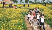1일 경북 포항시 남구 호미곶면 유채꽃길을 찾은 어린이들이 즐거운 시간을 보내고 있다. 포항시 제공}