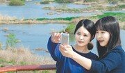 3일 대구 동구 대림동 안심습지를 찾은 관광객들이 전망대에서 기념사진을 찍고 있다. 대구 동구 제공}