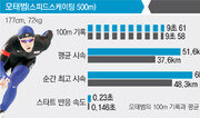 밴쿠버 겨울올림픽 스피드스케이팅 남자 500m는 짧은 시간에 가장 폭발적인 스피드를 내야 하는 빙상 종목이다. 16일 이 종목에서 우승한 모태범(21·한국체대)은 그래서 남자 육상 100m 세계신기록 보유자인 ‘번개’ 우사인 볼트(24·자메이카)에 비견된다. 종목 자체가 다르고 장비와 코스 등도 크게 달라 단순 비교에는 무리가 있다. 하지만 두 선수에겐 적지 않은 공통점이 있다.○ 기록 단축의 열쇠는 스타트단거리 종목에서 스타트는 결과에 큰 영향을 끼친다. 모태범은 스타트에 일가견이 있다. 체육과학연구원이 지난해 테스트한 자료에 따르면 모태범의 스타트 반응 속도는 0.23초로 한국 선수 가운데 가장 빨랐다. 모태범은 또 이번 대회 2차 레이스 초반 100m에서 31번의 피치(스케이트로 얼음을 한 번 밀어내는 동작)로 시간을 단축했다.볼트는 키가 196cm의 장신이기 때문에 초반 순발력이 떨어지는 편이다. 2008년 베이징 올림픽 100m에서 당시 세계신기록인 9초69로 우승하긴 했지만 스타트 반응 속도는 0.165초로 최하위권이었다. 볼트는 이후 스타트 훈련에 전력을 기울였고 지난해 세계선수권에서는 0.146초로 이를 단축했다. 9초58이라는 기록 역시 스타트 향상에서 나온 셈이다. ○ 100m 경주의 승자는 볼트 “바다거북하고 조오련하고 수영시합하면 누가 이길 것 같노.” 곽경택 감독의 영화 ‘친구’에 나오는 대사다. 그러면 모태범과 볼트가 경주를 하면 누가 더 빠를까. 이 가상 대결은 거리에 따라 결과가 다르다. 모든 조건을 배제하고 100m 결과로만 보면 볼트가 빠르다. 볼트는 지난해 베를린 세계육상선수권대회에서 9초58로 테이프를 끊었다. 시속으로 환산하면 37.6km다. 모태범의 첫 100m 기록은 1차 레이스와 2차 레이스가 각각 9초63과 9초61이다. 100m 이후에는 가속도가 붙은 후 모태범의 스케이트가 빛을 발한다. 이후 400m를 모태범은 25초29에 주파했다. 시속 56.9km다.이헌재 기자 uni@donga.com ▲다시보기=모태범, 한국 빙속 사상 첫 번째 금메달 쾌거}