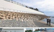 한국수력원자력은 1일 부산 기장군 장안읍 고리원전본부의 방벽 증축공사를 완료했다. 위 사진은 166억 원의 예산을 들여 10m 높이로 올려 쌓은 해안방벽. 아래 사진은 이번에 새로 만든 차수문이다. 개당 무게가 40t에 이르는 차수문은 유사시 해일 피해를 막는 역할을 한다. 부산=김재명 기자 base@donga.com}