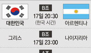 유쾌한 도전을 시작한 태극전사는 어떤 상대도 두렵지 않다. 이미 유럽의 강호인 그리스의 장신 숲을 보란 듯이 무너뜨렸다.대한민국 축구대표팀이 남아프리카공화국 월드컵에서 사상 첫 원정 16강 진출의 분수령이 될 일전을 치른다. 17일 오후 8시 30분 요하네스버그 사커시티 스타디움에서 열리는 영원한 우승 후보 아르헨티나와의 조별리그 B조 2차전. 12일 1차전에서 한국은 그리스에 2-0의 완승을 거뒀다. 아르헨티나는 나이지리아를 1-0으로 꺾었다.한국은 국제축구연맹 랭킹 47위. 반면 월드컵 2회 우승에 빛나는 아르헨티나는 7위로 몸값이 수백억 원에 이르는 스타들이 즐비하다. 그 격차만큼이나 아르헨티나는 한동안 한국이 넘보기 힘든 높은 벽이었다. 한국은 아르헨티나와의 유일한 월드컵 맞대결이던 1986년 멕시코 대회에서 1-3의 완패를 당했다. 그러나 한국은 2002년 한일 월드컵에서 포르투갈, 이탈리아, 스페인 등 강호들을 연파하며 4강까지 내달렸다. 당시 주역인 박지성은 이제 주장으로 후배들을 이끌고 있다. 박주영, 이청용, 기성용 등 젊은 피는 거침없는 기세로 그라운드를 누비고 있다.대표팀 허정무 감독은 누구보다 깊은 감회에 젖어든다. 1986년 멕시코 월드컵에서 디에고 마라도나 현 아르헨티나 대표팀 감독을 밀착 마크하다 옆차기까지 날린 기억은 요즘도 많은 사람의 머릿속에 또렷하게 남아 있다. 지도자로서 마라도나와 재대결을 앞둔 그는 철저한 준비 속에 소통과 긍정의 리더십으로 새로운 역사를 꿈꾸고 있다. 허 감독은 “다윗도 골리앗을 누르지 않느냐”며 즐거운 반란을 다짐했다. 믿음직스러운 노란 완장을 찬 박지성은 “이기려고 경기장에 나선다”고 각오를 밝혔다. 한국이 아르헨티나를 꺾은 뒤 이날 오후 11시에 열리는 경기에서 그리스가 나이지리아를 이기거나 비기게 되면 16강 진출을 일찌감치 확정지을 수도 있다. 설사 결과가 나쁘더라도 실망할 필요는 없다. 마지막 남은 나이지리아와의 경기에 다 걸면 그뿐이다. 전국의 거리와 광장에서 다시 붉은 물결을 이룰 4900만 국민은 이제 킥오프의 순간만을 손꼽아 기다리고 있다.김종석 기자 kjs0123@donga.com ▲ 동영상 = 빗 속에서도 뜨거운 월드컵 응원 열기, 서울광장 길거리 응원 현장}