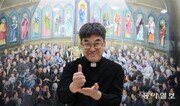 신종 코로나바이러스 감염증(코로나19) 확산으로 ‘신자들과 함께하는 미사’는 중단됐지만 한 사제의 미사는 멈추지 않았다. 수어(手語)로 진행되는 침묵의 미사다. 아시아 최초의 청각장애인 사제인 박민서 신부(52)는 미사가 중단되자 신자들의 단체사진을 제대(祭臺)에 올려놓고 미사를 봉헌하고 있다. 1일 청각장애인을 위한 성당인 서울 성동구 마장로 에파타 본당에서 그를 만났다. 인터뷰는 수어 통역을 통해 진행됐다. ―혼자 미사를 올리는 사진과 동영상이 소셜네트워크서비스(SNS)에서 큰 감동을 주고 있다. 어떻게 시작했나. “무엇보다 코로나19로 고통받는 이들과 성당에 오고 싶어도 올 수 없는 신자들을 위로하고 싶었다. ‘당신들을 기억하고, 당신들을 위해 기도하니 힘내 달라’라는 마음을 전하려고 했다.” ―어려움은 없었나. “SNS에서 미국의 농아 사제 몇 분이 미사 올리는 것을 보면서 나도 할 수 있겠다고 생각했다. 가톨릭 방송에서 미사를 중계하지만 모두 수어 통역이 있는 것은 아니고 자막도 부족해 답답해하는 신자가 적지 않다.”―반응은 어떤가. “(박 신부는 신자들과 함께하는 SNS 대화방의 문자들을 보여줬다) 보시고 너무 좋아들 한다. 한 할머니는 신부님 얼굴 보니 감사하고 눈물난다고 썼다.” 그는 서울 강북구의 한 수녀회 건물을 빌려 미사를 집전해 왔다. 하지만 등록된 신자는 500여 명인데 150명 정도만 참석할 수 있을 정도로 비좁았다. 2011년부터 서울대교구는 물론이고 지방과 해외의 한인 성당 150여 곳을 찾아가 수어로 호소했고 4만 명이 후원금을 보탰다. 첫 삽을 뜬 지 2년 만인 지난해 8월 서울 성동구 마장동에 에파타 성당이 완공됐다. 에파타는 예수와 제자들이 사용한 것으로 알려진 아람어로 ‘열려라’라는 뜻이다. 이곳은 지하 2층, 지상 6층으로 대성전과 소성전, 언어청각치료실, 작은 피정의 집 등을 갖췄다. 미사를 봉헌하는 350석 규모 대성전은 어디서든 수어가 잘 보이도록 계단식으로 만들었고 대형 발광다이오드(LED) 전광판을 설치해 수어와 자막을 볼 수 있도록 했다. ―성당 완공 이후 기쁨이 컸을 텐데 신자와 함께하는 미사가 중단되는 초유의 사태가 벌어졌다. “이 성당은 청각장애가 있는 신자들의 오랜 꿈이었다. 수어 미사를 보고 서로 얼굴을 보기 위해 충남 천안에서 오는 신자들도 있다. 코로나19를 이겨내 하루라도 빨리 만나고 싶을 것이다.” ―최근 성당에 변화가 있다고 들었다. “(박 신부 얼굴에 큰 웃음이 번졌다) 대성전과 소성전의 스테인드글라스가 완성됐다. 성당 앞에는 예수치유상과 영혼의 영적 배달을 상징하는 우체통 모양의 촛불 박스가 새로 들어섰다. 신자들이 보면 좋아할 텐데 아직 못 보여줬다.” ―성당 봉헌식 때 교구장인 염수정 추기경은 어떤 말씀을 했나. “축하의 말씀과 함께 청각장애 신자들의 영혼을 잘 이끌어 달라고 하셨다.” ―2013년 세계 최초이자 유일한 시청각장애인 사제인 키릴 악셀로드 신부(78)와 함께 만난 기억이 난다. “신부님이 고향 남아프리카공화국에서 교육 센터를 건립하기 위해 애쓰고 있다는 소식을 전해 들었다. 내가 사제의 길을 걸으면서 어려울 때마다 힘을 준 마음의 스승이다.” ―직접 만나지 못하는 신자들에게 하고 싶은 말은…. “수어 미사에 대한 신자들의 갈증이 커서 미사를 밴드에서 생중계하기 시작했다. 불가능해 보이던 성당이 완공될 때 ‘하느님은 불가능이 없으시다’는 말이 떠올랐다. 용기를 잃지 않고 기도하면 곧 성당서 함께 만나게 될 것이다.” 김갑식 문화전문기자 dunanworld@donga.com}