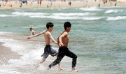 7일 부산 해운대해수욕장을 찾은 관광객들이 파도에 뛰어들며 더위를 식히고 있다. 주말에만 해운대해수욕장과 송정해수욕장에 10만6000여 명이 찾았다. 이날 고기압의 영향으로 전국 최고 기온이 23∼32도에 달하며 초여름 날씨를 보였고 충북 경북 일부 지역과 대구에는 한때 폭염주의보가 내려졌다.부산=박경모 기자 momo@donga.com}