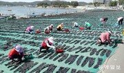 한낮 최고기온이 27도까지 올라간 9일 부산시 기장군 일광면 이동마을 포구에서 어민들이 이 지역 특산물 다시마를 말리고 있다. 부산=박경모 기자 momo@donga.com}