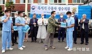 11일 부산 사상구 부산구치소(소장 유태오)에서 교정협의회 회원들이 수형자들의 건강한 여름 나기를 위해 생수 1만5000병을 기증했다. 교정협의회는 소년수용자 독서지도, 종교를 통한 심성순화교육 등 수형자들의 교정교화를 위한 봉사활동을 해왔다. 박경모 기자 momo@donga.com}