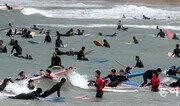 14일 부산 해운대구 송정해수욕장에서 시민들이 서핑을 하고 있다. 이날 부산 지역에선 흐리거나 일부 비가 내렸으나 초속 8m 이상의 강한 남서풍이 불어 서핑을 즐기려는 이들이 해수욕장에 몰렸다.부산=박경모 기자 momo@donga.com}