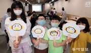 21일 부산 중구 부산시립중앙도서관 글빛터에서 열린 ‘도서관과 함께 건강한 여름나기’ 행사에서 어린이들이 직접 만든 ‘팽수부채’를 들어 보이고 있다. 박경모 기자 momo@donga.com}