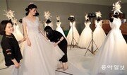 22일 부산 해운대구 벡스코2전시장에서 열린 ‘제46회 대한민국웨딩산업박람회’에서 신상품 웨딩드레스들이 전시되고 있다. 부산=박경모 기자 momo@donga.com}