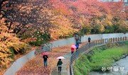 전국에 미세먼지를 씻어주는 촉촉한 가을비가 내린 8일 우산을 쓴 시민들이 서울 강북구 우이천 산책로를 걷고 있다. 9일 중부지방은 아침까지 비가 내리는 곳이 있겠다. 미세먼지 농도는 전 권역에서 ‘보통’ 수준을 보일 것으로 전망된다. 박영대 기자 sannae@donga.com}