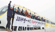 올해 4월로 예정된 모노레일 시험 운행을 준비하는 대구도시철도건설본부 직원들이 북구 팔달교 교량에서 안전 운전과 무사고 결의를 다지고 있다. 현재 3호선 공정은 84%이며 올 하반기 개통될 예정이다. 대구시 제공}