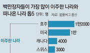 지난해 세계적으로 고국을 등지고 다른 나라로 떠난 백만장자가 10만8000명에 달하는 것으로 조사됐다. 백만장자들이 자기 나라를 떠나는 이유로는 정부의 지나친 경제 간섭, 정정 불안, 높은 세금 등이 꼽혔다. 최근 블룸버그뉴스가 남아프리카공화국 요하네스버그의 리서치회사 뉴월드웰스의 조사 결과를 인용 보도한 바에 따르면 10만8000명이란 수치는 2017년 대비 14% 증가한 것이다. 2013년에 비해서도 두 배 이상 늘었다. 백만장자들이 많이 이주하는 상위 5개국은 호주, 미국, 캐나다, 스위스, 아랍에미리트(UAE)였다. 특히 호주는 지난 27년간 금융위기가 단 한 번도 없을 정도로 안정된 경제와 양호한 치안 등이 매력적인 요소로 꼽혔다. 이뿐만 아니라 상속세가 없어 세계 백만장자들의 호감을 얻고 있다. 나라가 아닌 도시별로 구분했을 때는 미국 도시가 많은 지지를 받았다. 지난해 1000명 이상의 세계 백만장자가 이주한 도시로는 뉴욕, 로스앤젤레스, 마이애미(이상 미국), 멜버른과 시드니(이상 호주), 두바이(아랍에미리트) 등이 꼽혔다. 반면 백만장자들이 많이 떠나는 상위 5개국은 중국 러시아 인도 터키 프랑스로 나타났다. 특히 중국에서는 지난해에만 1만5000명의 백만장자가 다른 나라로 이주했다. 정부 주도의 경제와 강력한 자본 감시 등이 부자들을 떠나게 만드는 요인으로 지적됐다. 다만 뉴월드웰스는 “중국과 인도 백만장자들의 ‘엑소더스’가 크게 우려할 만한 상황은 아니다. 급속한 경제성장으로 떠나는 백만장자 수만큼 새로운 부자가 생겨나고 있다”고 평했다. 러시아는 2014년 우크라이나 크림반도 합병 후 연이은 국제 제재 등으로 경제가 위축되고 있다는 점, 터키는 정치와 경제가 모두 불안하다는 점이 우려 요인으로 꼽혔다. 이번 조사에서 브렉시트(영국의 유럽연합 탈퇴) 대혼란에 휩싸인 영국도 주목을 받았다. 영국은 백만장자들이 등지는 나라 6위에 올라 눈길을 끌었다. 지난 30여 년 동안 백만장자들이 선호하는 이주 국가로 꼽혀 왔다는 점을 감안할 때 이례적인 결과다. 1990년 이후 약 8000명의 외국 백만장자들이 영국으로 이주했다. 그러나 최근 영국으로 들어오는 외국 백만장자는 거의 없는 반면 2017년과 2018년 각각 4000명과 3000명의 영국 백만장자가 해외로 이주했다. 브렉시트 후폭풍, 높은 상속세(최고 40%) 등이 이유로 꼽혔다.정미경 기자 mickey@donga.com}
