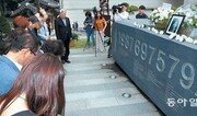 7일 오후 서울 서대문구 연세대 한열동산에서 열린 이한열 열사 32주기 추모식에서 참석자들이 묵념을 하고 있다. 이날 행사에는 이 열사의 어머니 배은심 여사와 김용학 연세대 총장 등이 참석했다. 최혁중 기자 sajinman@donga.com}