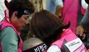 민주노총 소속 전국학교비정규직노동자 100명이 단체 삭발을 했다. 17일 서울 종로구 청와대 사랑채 인근에서 기자회견을 열고 임금인상 등을 요구하면서다. 이들은 일선 학교에서 급식실 조리사, 조리실무사, 교무행정사, 돌봄전담사, 전문상담사 등으로 일하고 있다. 주로 40~50대 연령 여성이었다. 줄을 맞춰 자리에 앉아 머리를 깎았다. 이들은 비정규직 노동자 임금을 ‘공무원 최하위 직급의 80% 수준으로 높일 것’과 ‘처우개선을 위한 교육공무직법 제정’ 등을 촉구했다. 민주노총은 문재인 대통령의 대선 공약이었던 ‘공공부문 비정규직 제로’ 정책의 이행을 촉구하며 다음달 3일부터 총파업을 진행하겠다고 예고한 상태다. 최혁중 기자 sajinman@donga.com}
