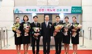 에어서울(대표 조규영)이 16일 오후 인천공항에서 베트남 하노이 신규 취항식과 함께 오후 9시 40분 하노이행 첫 편 RS521을 195석 만석으로 띄웠다. 에어서울 조규영 대표를 비롯한 임직원이 취항식 기념으로 고객들과 함께 첫 편 탑승객을 대상으로 선물 추첨 행사를 가졌다.첫 편 탑승객들은 에어서울 왕복항공권을 비롯해 기내에서 사용할 수 있는 면세품 할인권, 에어서울 모형 항공기, 기내 스낵과 음료 이용권, 담요, 안대 등의 선물을 받았다. 에어서울 관계자는 “하노이 신규 취항을 기념해서 첫 편 탑승 고객분들께 좋은 추억을 만들어 드리고자 풍성한 선물과 함께 첫 취항을 축하하는 자리를 마련했다.”며, “베트남 수도로서 대표 관광지로 꼽히는 하노이 여행을 에어서울과 함께 즐기시길 바란다.”고 말했다. 에어서울은 인천~하노이 노선을 매일 한 편씩 운항한다.글 : 전영한 기자 scoopjyh@donga.com / 사진: 에어서울 제공}
