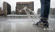 서울 지역에 비가 내린 7일 오후 서울 중구 서울광장 스케이트장에 한 시민이 스케이트장에 발을 내딛자 빗물이 튀고 있다. 예년과 달리 추위가 오지 않아 전국의 스케이트장과 스키장에 손님이 뜸하다. 전영한 기자 scoopjyh@donga.com}
