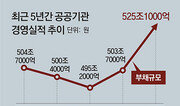 지난해 인건비 등 지출이 크게 늘며 정부와 공기업 등 공공부문 수지 흑자가 글로벌 금융위기 이후 최대폭으로 감소한 것으로 나타났다. 공공부문의 역할이 갈수록 커지며 지출 증가율은 2년 연속 수입을 앞섰다. 25일 한국은행이 내놓은 ‘2019년 공공부문 계정’에 따르면 지난해 공공부문 수지는 13조8000억 원 흑자로 2018년(53조1000억 원)보다 흑자 규모가 39조3000억 원 줄었다. 글로벌 금융위기로 전년 대비 적자 규모가 51조5000억 원 늘었던 2009년 이후 공공부문 수지가 가장 큰 폭으로 악화된 것이다. 흑자 규모로는 2013년(2조6000억 원 적자) 이후 가장 적었다. 공공부문 흑자 폭이 줄어든 건 수입보다 지출 증가 속도가 더 빨랐기 때문이다. 공공부문 총수입은 876조3000억 원으로 1년 새 2.8%(23조5000억 원) 늘었다. 반면 건강보험급여비와 사회수혜금이 크게 늘며 총지출(862조4000억 원)은 7.9%(62조8000억 원) 증가했다. 2018년 역대 처음으로 공공부문 지출 증가율이 수입보다 높아진 이후 2년 연속으로 수지가 악화됐다. 공공부문이 직원에게 지급한 보수는 2007년 이후 가장 큰 폭으로 늘어난 158조3000억 원으로 집계됐다. 비정규직이 대거 정규직으로 전환하고 공공부문 인력 규모가 커진 영향으로 풀이된다. 한국전력과 한국토지주택공사 등 비금융 공기업 수지는 7조1000억 원 적자로 2017년 이후 3년 연속 적자를 이어갔다. 세종=남건우 기자 woo@donga.com세종=송충현 기자 balgun@donga.com}